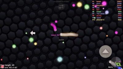 Una de las ventajas de Slither.io es que es un título muy fácil de jugar con controles simples, sencillos y accesibles. Es un entretenimiento para todas las edades. Después de comenzar el juego, debemos escoger un apodo inventado, que será visible sobre nosotros en la partida. La app de Lowtech Studios, creada en 2016, es un juego en línea donde pondremos a prueba nuestras fortalezas y habilidades con otros usuarios reales de todo el mundo. Luego de ingresar el nombre ficticio que nos representa, somos transferidos al tablero. El lugar donde se desarrolla la acción es un mapa negro con bolas de colores dispersas en diferentes lugares. El punto central de todo esto será controlar a una pequeña serpiente, que puede tener varias máscaras. La tarea básica es mover nuestra serpiente a lo largo y ancho del mapa, lo que se puede hacer de una manera muy simple. Como dijimos, los controles y el manejo de nuestra figura es muy sencillo, podremos hacerlo con tener tan solo un mouse, porque nuestro alargado amigo siempre seguirá nuestro cursor. El control parece muy simple, pero pronto notaremos que requerirá mucha habilidad y que nos encontremos concentrados. Al controlar nuestro personaje, podemos recoger puntos coloridos en el tablero.