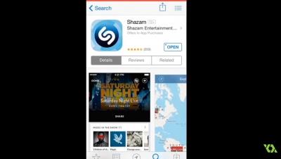 Shazam es una aplicación gratuita que ayuda a los usuarios a comprender el nombre de una canción pegadiza que se reproduce en la radio, la televisión o en cualquier otro lugar. Los usuarios simplemente sostienen el dispositivo iPhone debajo del altavoz de reproducción de música, y Shazam intenta identificar el álbum, el artista y el título de la canción. Shazam almacena el catálogo de audio de huellas dactilares en la base de datos. El usuario marca la canción durante 10 segundos y la aplicación crea una huella digital de audio. Shazam trabaja analizando el sonido capturado y buscando una coincidencia basada en la huella dactilar acústica en la base de datos de millones de canciones.