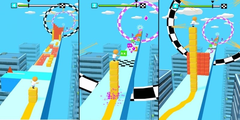 A medida que avanzamos en cada nivel iremos recogiendo cubos que serán fundamentales para que no perdamos nuestra vida. Tendremos que dosificarlos con la misión de que siempre nos quede aunque sea uno para no tocar el piso y la suficiente cantidad con la que sortear los objetos que se interpondrán en nuestra ruta. Hay 9 tipos diferentes de cubos que podremos coleccionar. Cada uno adopta diversas formas que pueden ser motivos de animales o frutas como cerditos o sandias.